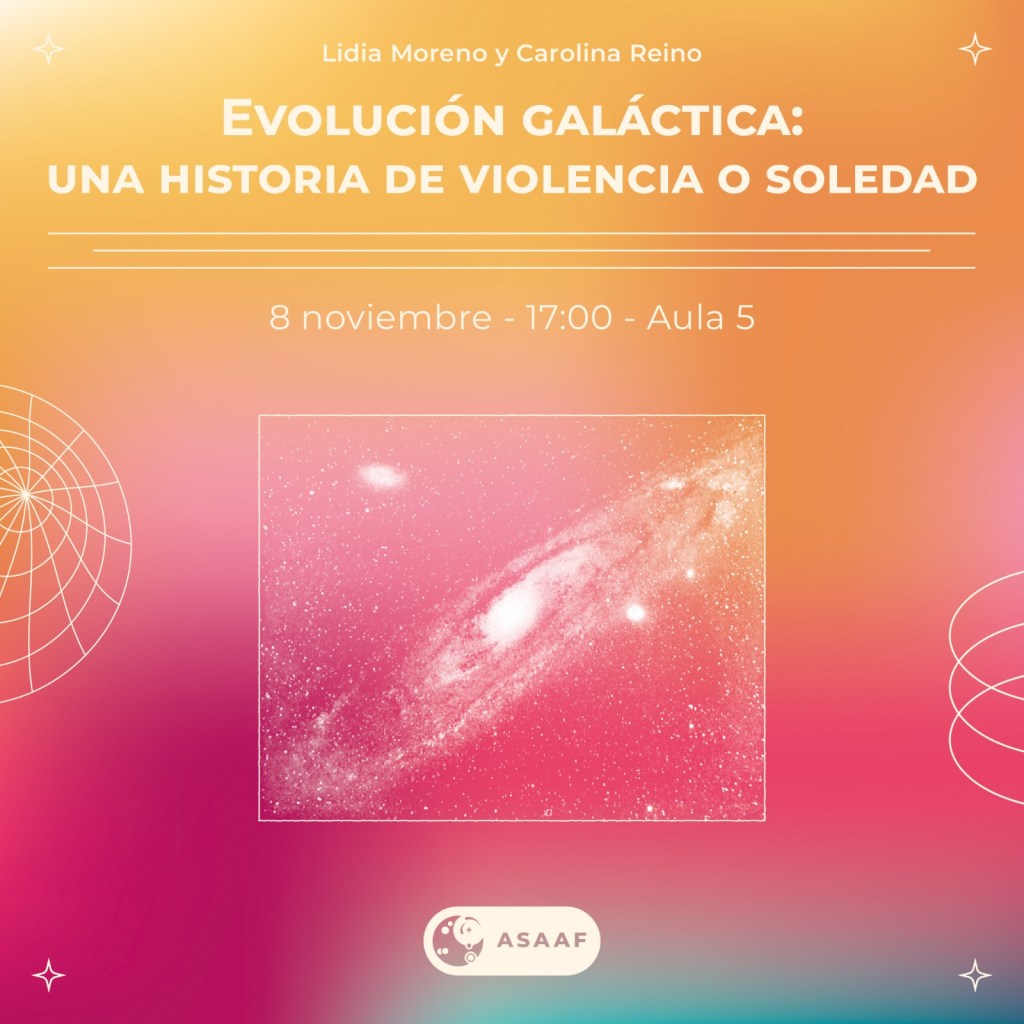 El alto mando de ASAAF, presidenta Carol y tesorera Lidia se unen en esta charla como dos galaxias espirales para ejemplificar cómo evolucionan las galaxias en el cosmos. ¿Preferirán las galaxias estar solas o mal acompañadas?